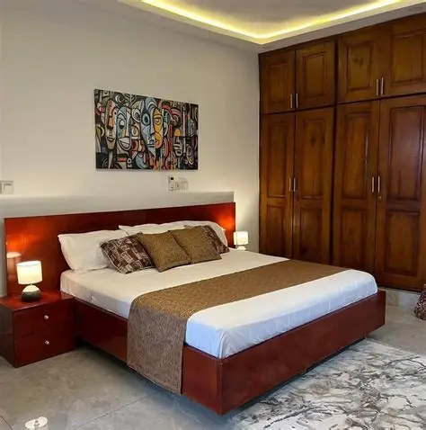 Résidence meublée avec 2 chambres, salon et salles de bain.