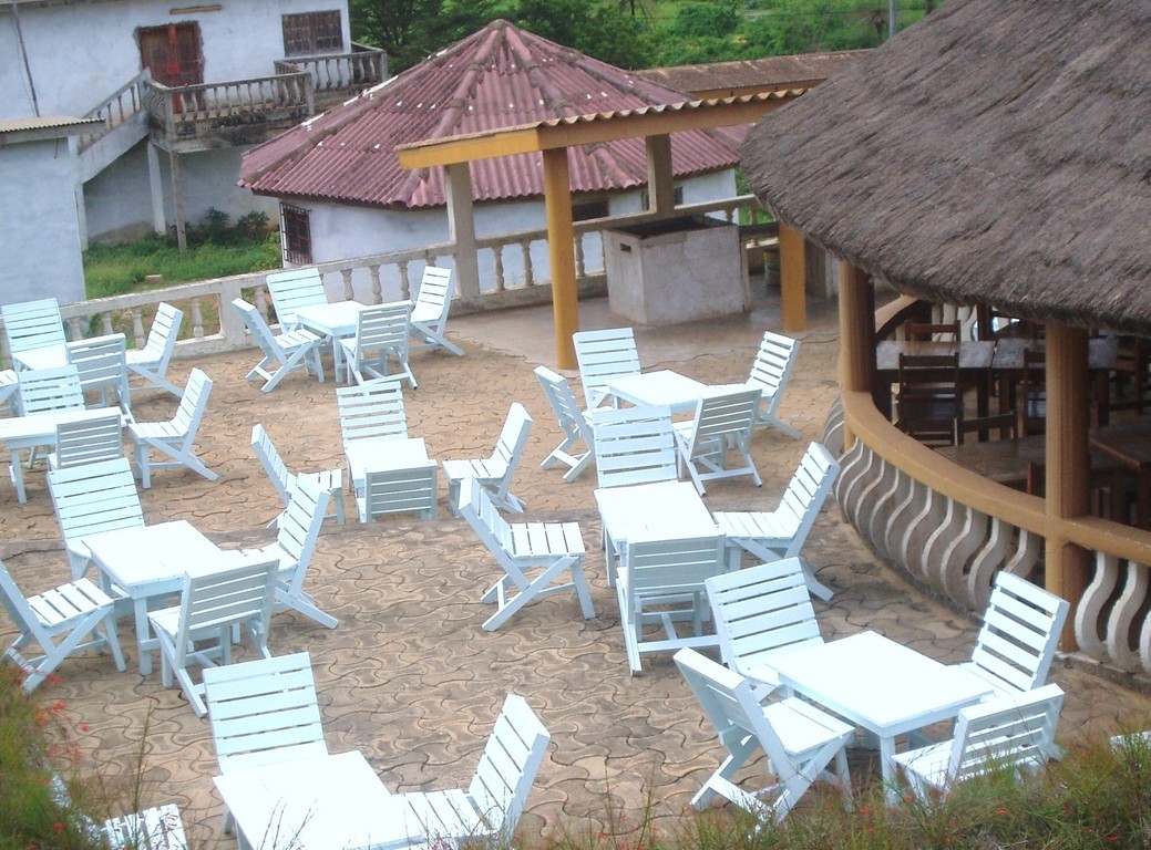 Hôtel historique de Sassandra avec vue sur l'embouchure du fleuve.