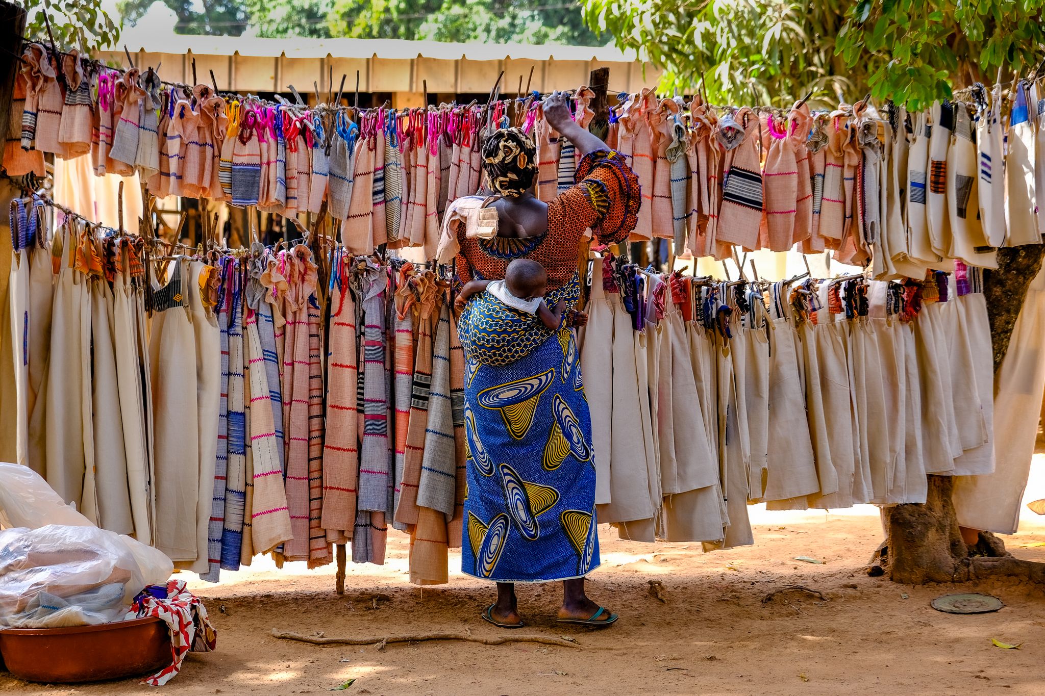 Village traditionnel Sénoufo réputé pour le tissage artisanal du coton. Fabrication des toiles de Korhogo peintes à la teinture végétale. Démonstration du tissage et vente directe aux visiteurs.