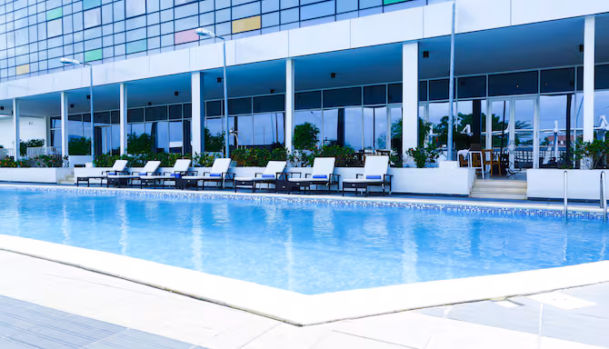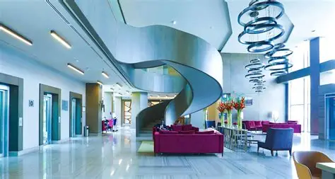 Hôtel 5 étoiles moderne jouxtant l'aéroport FHB avec piscine, spa et centre de conférences.